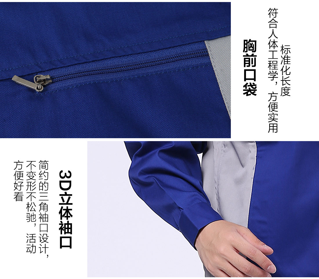 艳蓝配浅灰涤棉纱卡印刷厂工作服AC081-YS