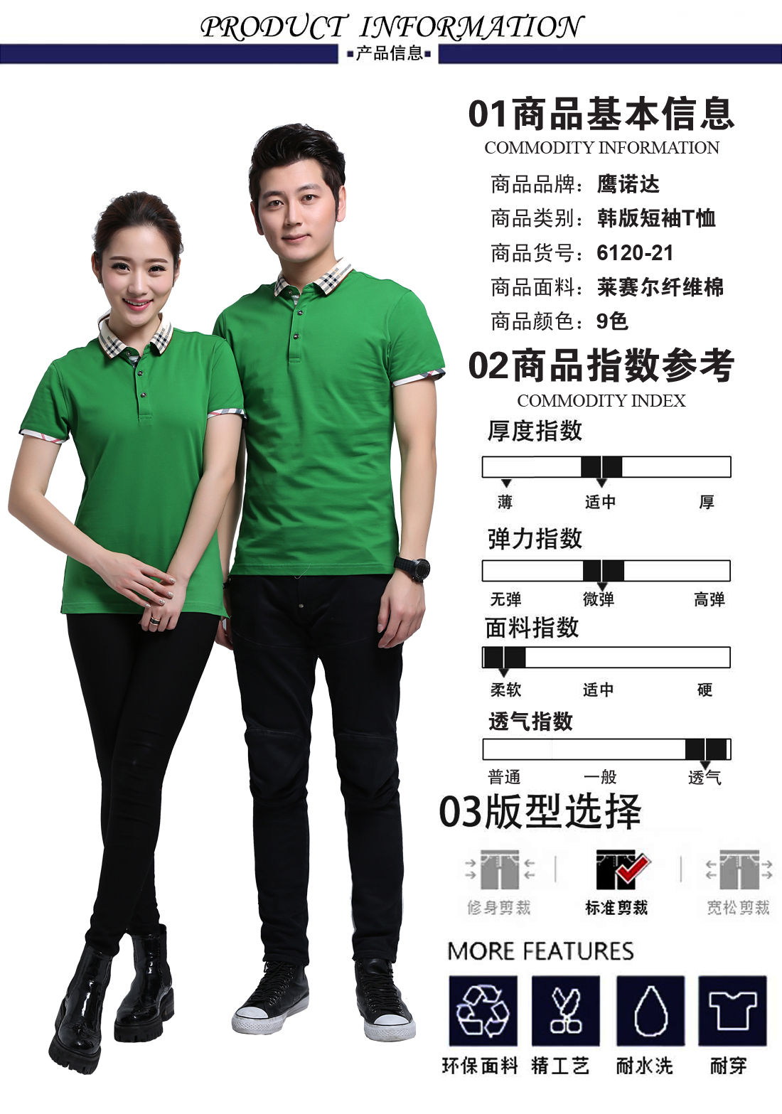 游客于 2017-06-21 09:26:23 发表苏州鹰诺服装:叶绿提花领莱赛尔纤维棉Polo衫ID6120-21