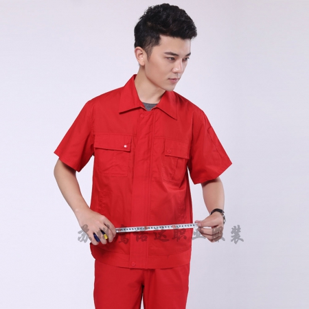 苏州鹰诺服装:大红配浅灰春秋工作服AC078