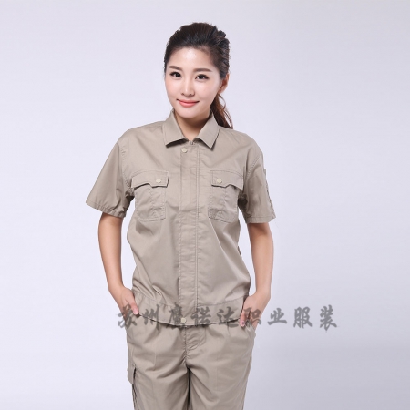 苏州鹰诺服装:驼色拼浅灰色工作服AC20-1