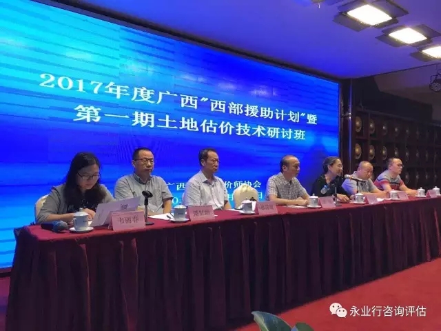 2017年7月13日,广西土地估价师协会举行"西部援助计划"暨第一期土地估价技术培训班,永业行总裁潘世炳应邀参加并讲授《评估机构业务创新管理》课程。培训班由广西土地估价师协会副会长兼秘书长韦丽春主持,中国土地估价师与土地登记代理人协会副会长洪亚敏及广西土地估价师协会会长邓强参加并在开班仪式上讲话,中估协技术协调部朱晨晨及来自广西的370名土地估价师参加培训。