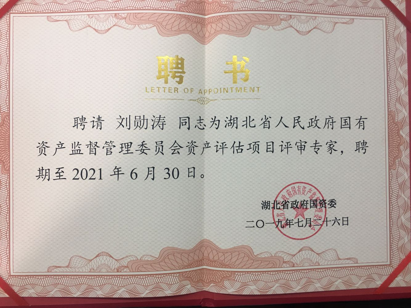永业行刘勋涛、张曙东入选省政府国资委资产评估项目评审专家库