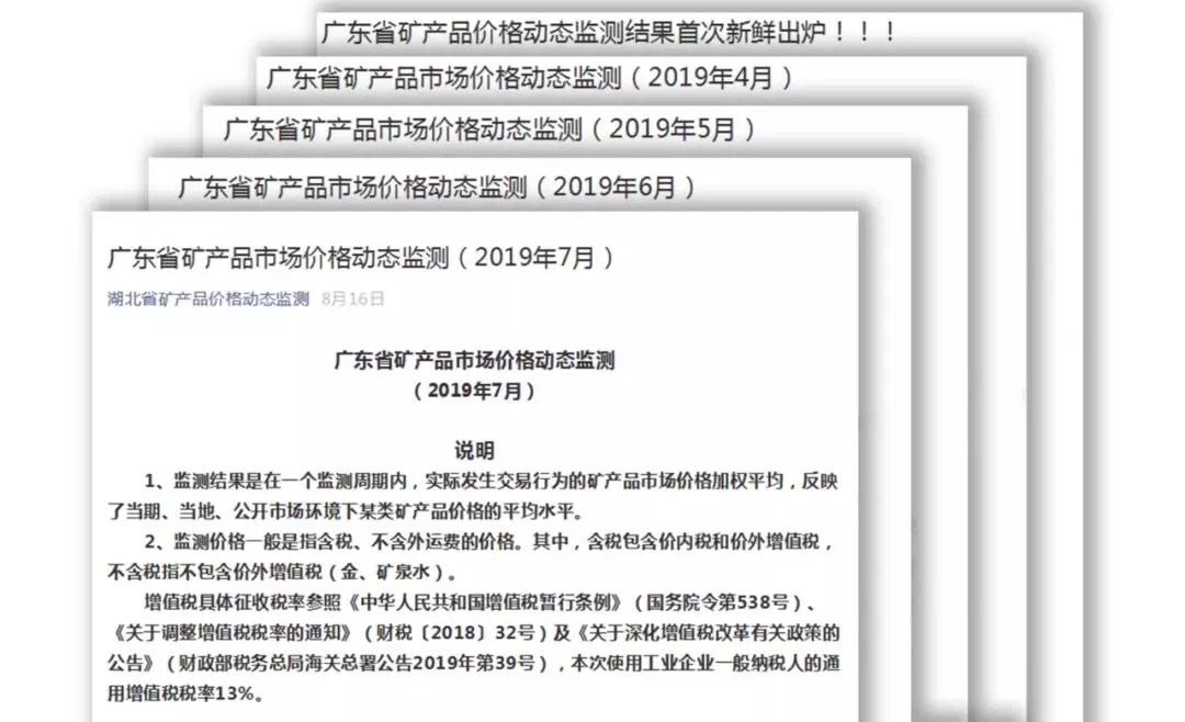 2019年3月永业行与“矿材网”合作,率先在广东省开展了矿产品价格动态监测工作,并且得到了当地主管部门的认可。