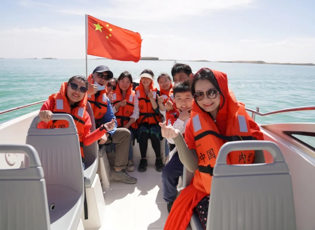 除了最美青海湖,此行还游览了有“青海马尔代夫”之称的西台吉乃尔湖和翡翠湖。翡翠湖湖水颜色如翡翠般美丽,像是上天赐予大自然的一块绿宝石。西台吉乃尔湖则是方圆百里大漠戈壁无人区的珍宝明珠,得益于大自然的鬼斧神工,一望无际的蔚蓝湖面让人流连忘返。大家在此乘船、游玩、合影,享受大自然恩赐的同时,不忘激励奋进,描绘永业行的美好明天,誓以更加积极的姿态投入到今后的工作之中。